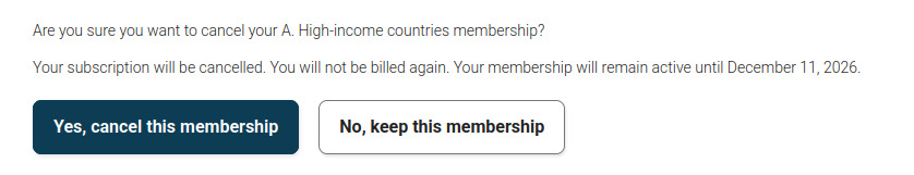 3. Click the Cancel button next to your active membership.